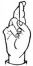 На ћирилици написано СТРАХИЊА МРЂА састоји се из 12 слова [?]. Исписано ћириличном једноручном азбуком за глувонеме: